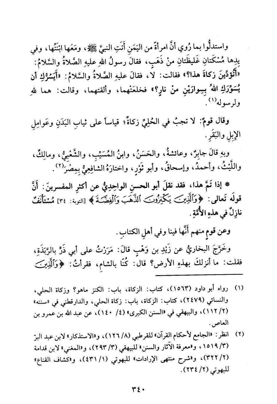 (¬2) انظر: "الجامع لأحكام القرآن" للقرطبي (8/ 126)، و"الاستذكار" لابن عبد البرّ (3/ 519)، و "معرفة الآثار والسنن" للبيهقي (3/ 293)، و"المغني" لابن قدامة (2/ 322)، و "شرح منتهى الإرادات" للبهوتي (1/ 431)، و"كشاف القناع" للبهوتي (2/ 234).