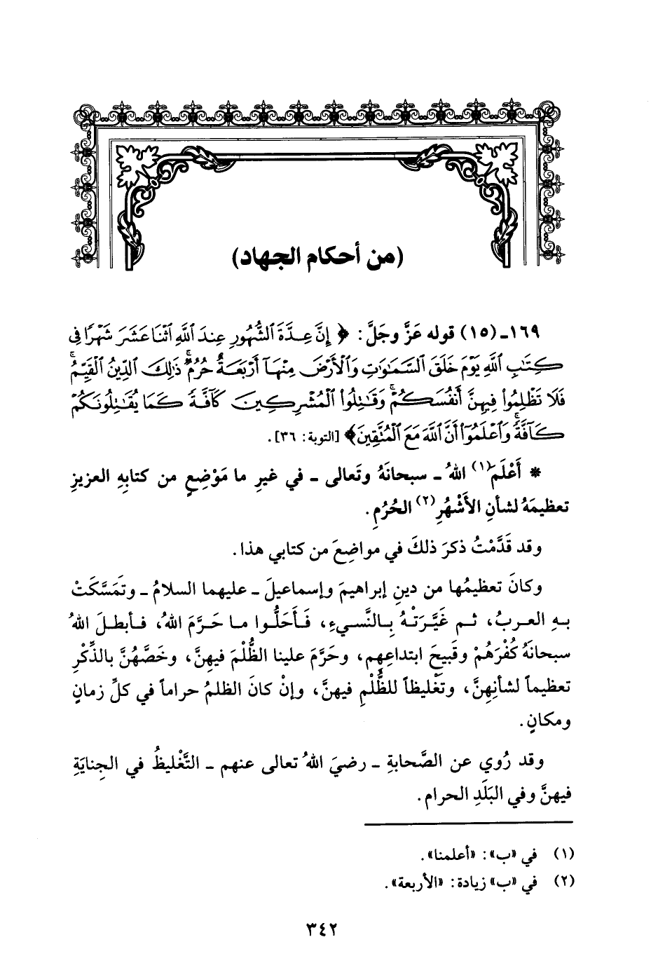 * أَعْلَم (¬1) اللهُ -سبحانَهُ وتَعالى- في غيرِ ما مَوْضِعٍ من كتابهِ العزيزِ تعظيمَهُ لشأنِ الأَشْهُرِ (¬2) الحُرُمِ.