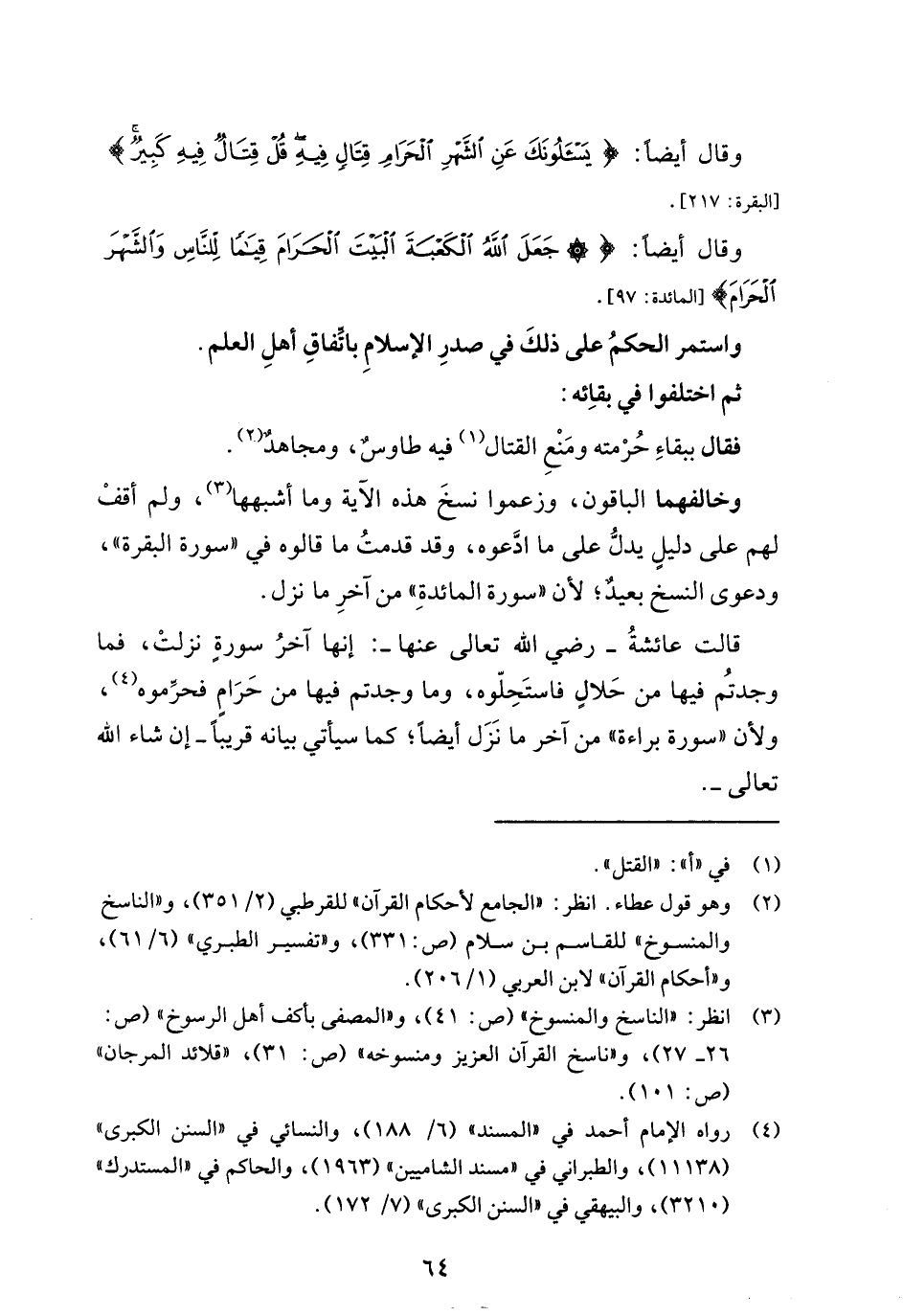 (¬3) انظر: "الناسخ والمنسوخ" (ص: 41)، و"المصفى بأكف أهل الرسوخ" (ص: 26 - 27)، و"ناسخ القرآن العزيز ومنسوخه" (ص: 31)، "قلائد المرجان" (ص:101).