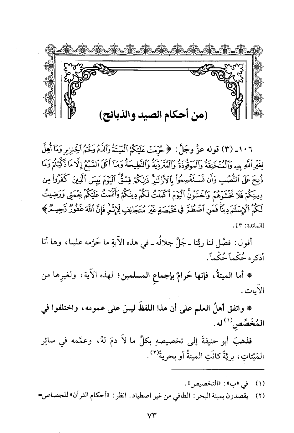 (¬2) يقصدون بميتة البحر: الطافي من غير اصطياد. انظر: "أحكام القرآن" للجصاص =