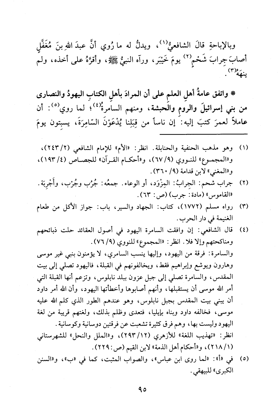 (¬4) قال الشافعي: إن وافقت السامرة اليهود في أصول العقائد حلت ذبائحهم ومناكحتهم وإلا فلا. انظر: "المجموع" للنووي (9/ 76).