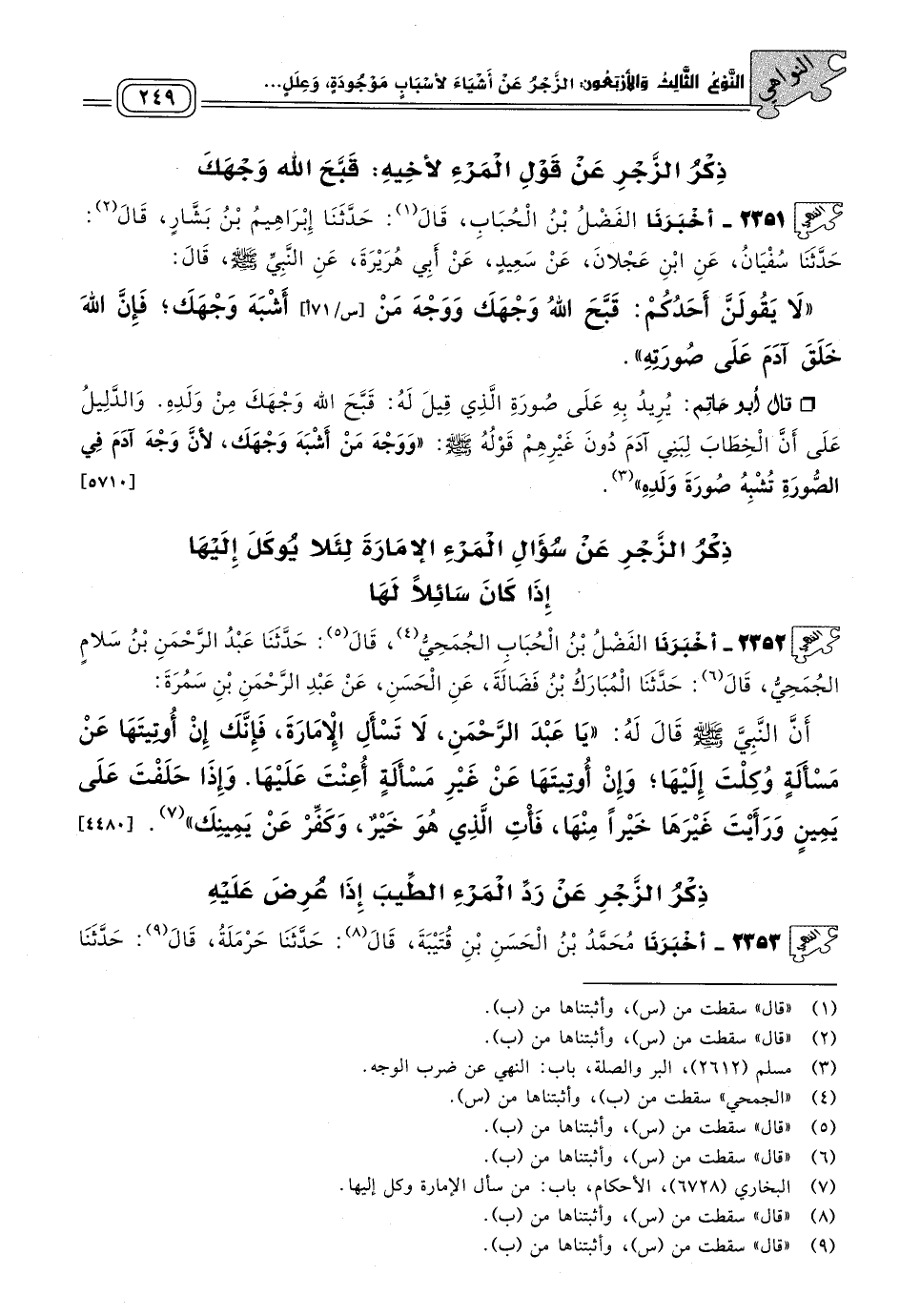 ذِكْرُ الزَّجْرِ عَنْ قَوْلِ الْمَرْءِ لأَخِيهِ: قَبَّحَ اللهُ وَجْهَكَ.