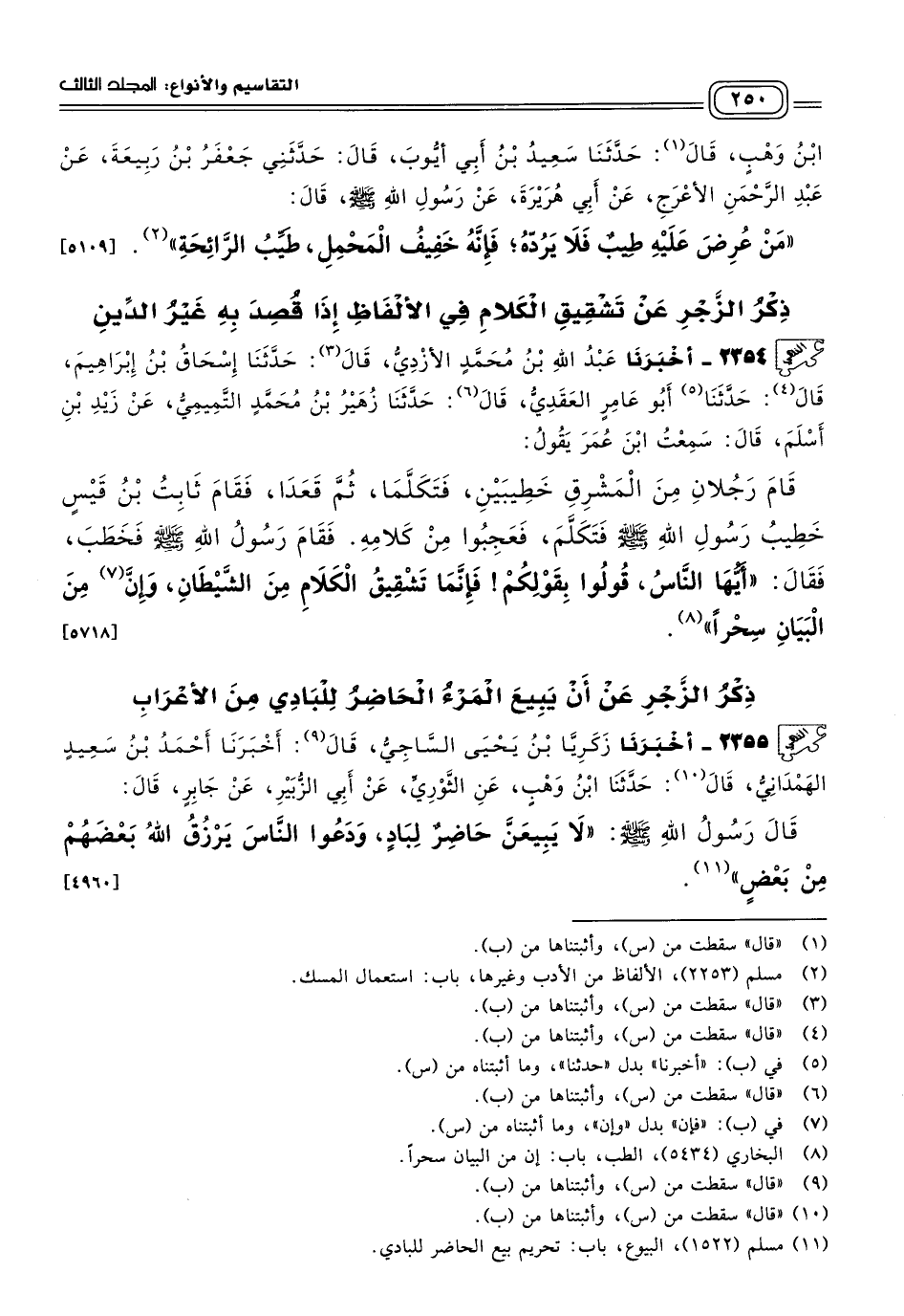 ذِكْرُ الزَّجْرِ عَنْ تَشْقِيقِ الْكَلَامِ فِي الأَلْفَاظِ إِذَا قُصِدَ بِهِ غَيْرُ الدِّينِ.