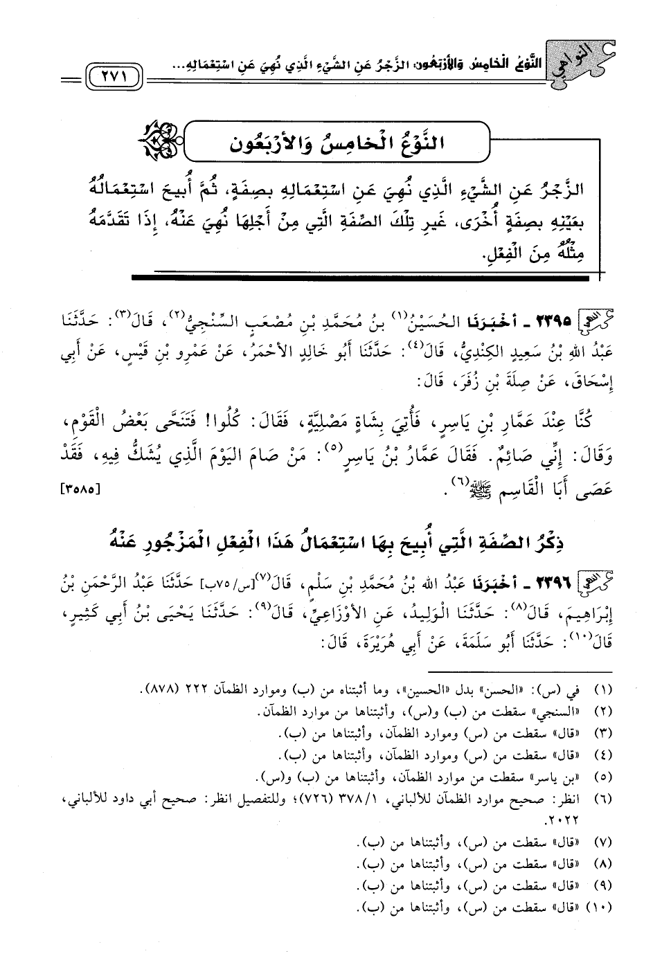 ذِكْرُ الصِّفَةِ الَّتِي أُبِيحَ بِهَا اسْتِعْمَالُ هَذَا الْفِعْلِ الْمَزْجُورِ عَنْهُ.