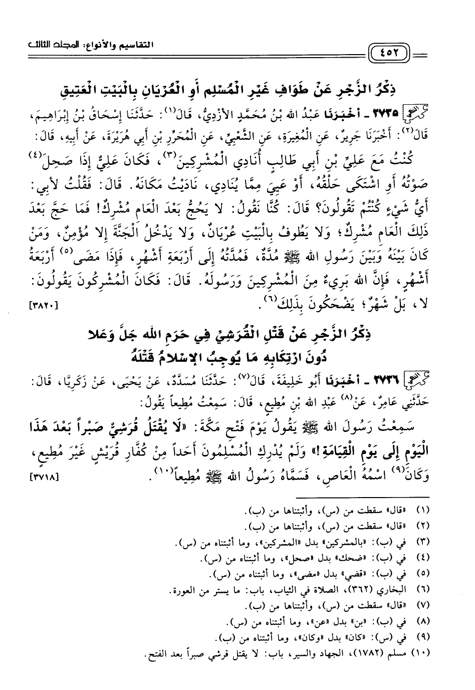 ذِكْرُ الزَّجْرِ عَنْ طَوَافِ غَيْرِ الْمُسْلِمِ، أَوِ الْعُرْيَانِ بِالْبَيْتِ الْعَتِيقِ.