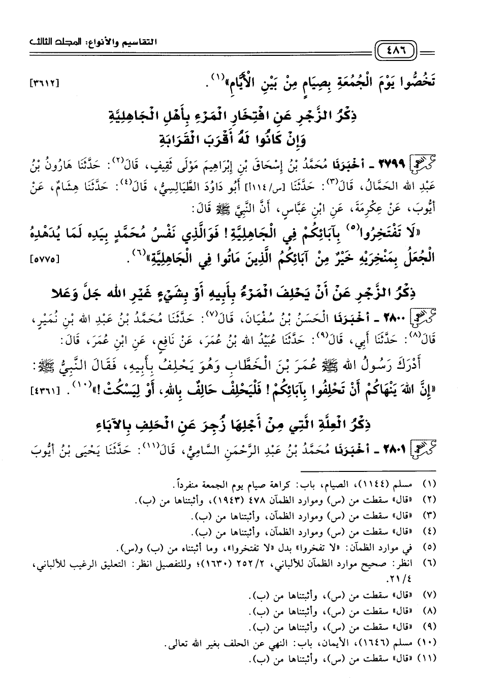 ذِكْرُ الزَّجْرِ عَنِ افْتِخَارِ الْمَرْءِ بِأَهْلِ الْجَاهِلِيَّةِ وَإِنْ كَانُوا لَهُ أَقْرَبَ الْقَرَابَةِ.