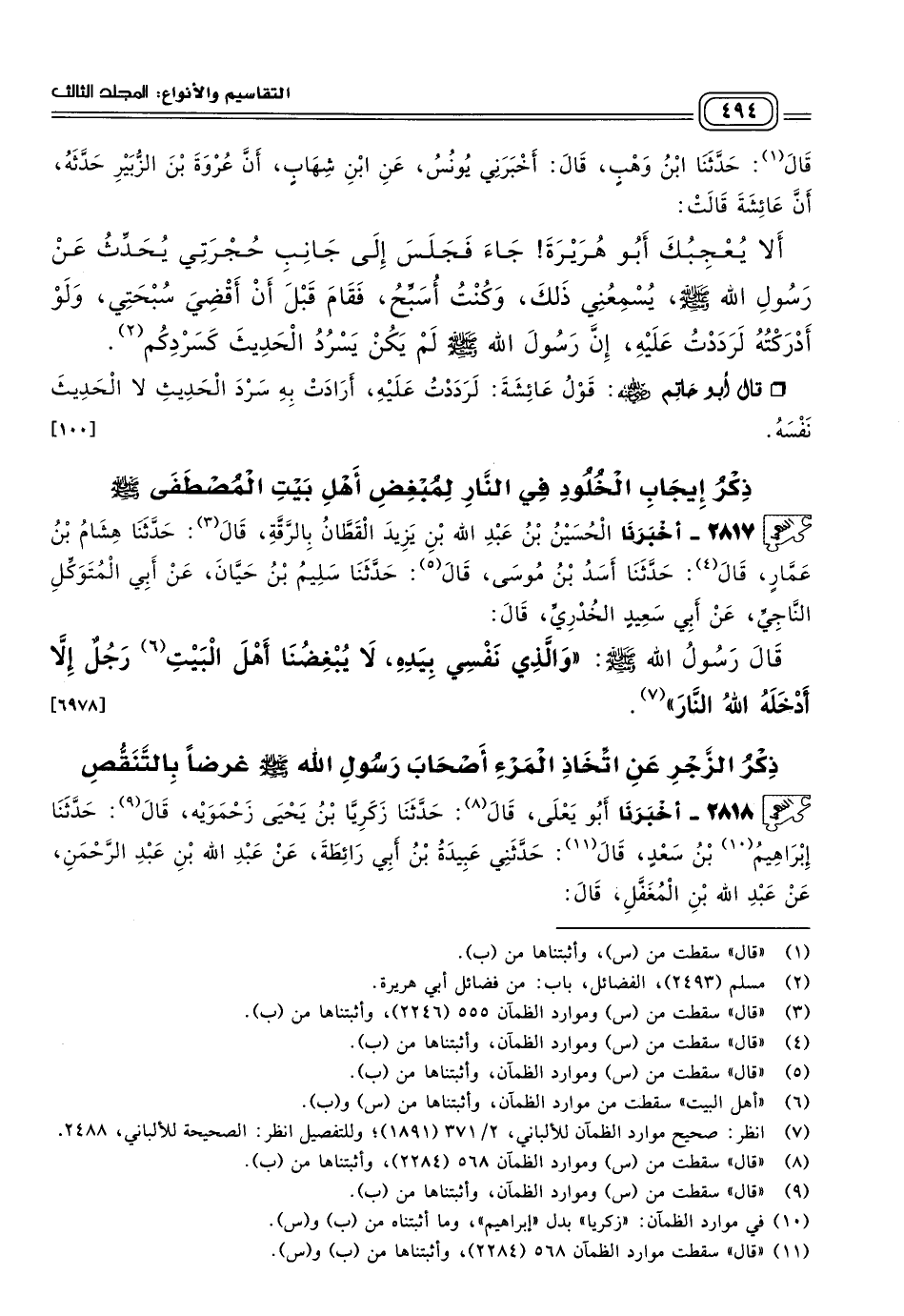 ذِكْرُ إِيجَابِ الْخُلُودِ فِي النَّارِ لِمُبْغِضِ أَهْلِ بَيْتِ الْمُصْطَفَى صَلى الله عَلَيه وسَلم.