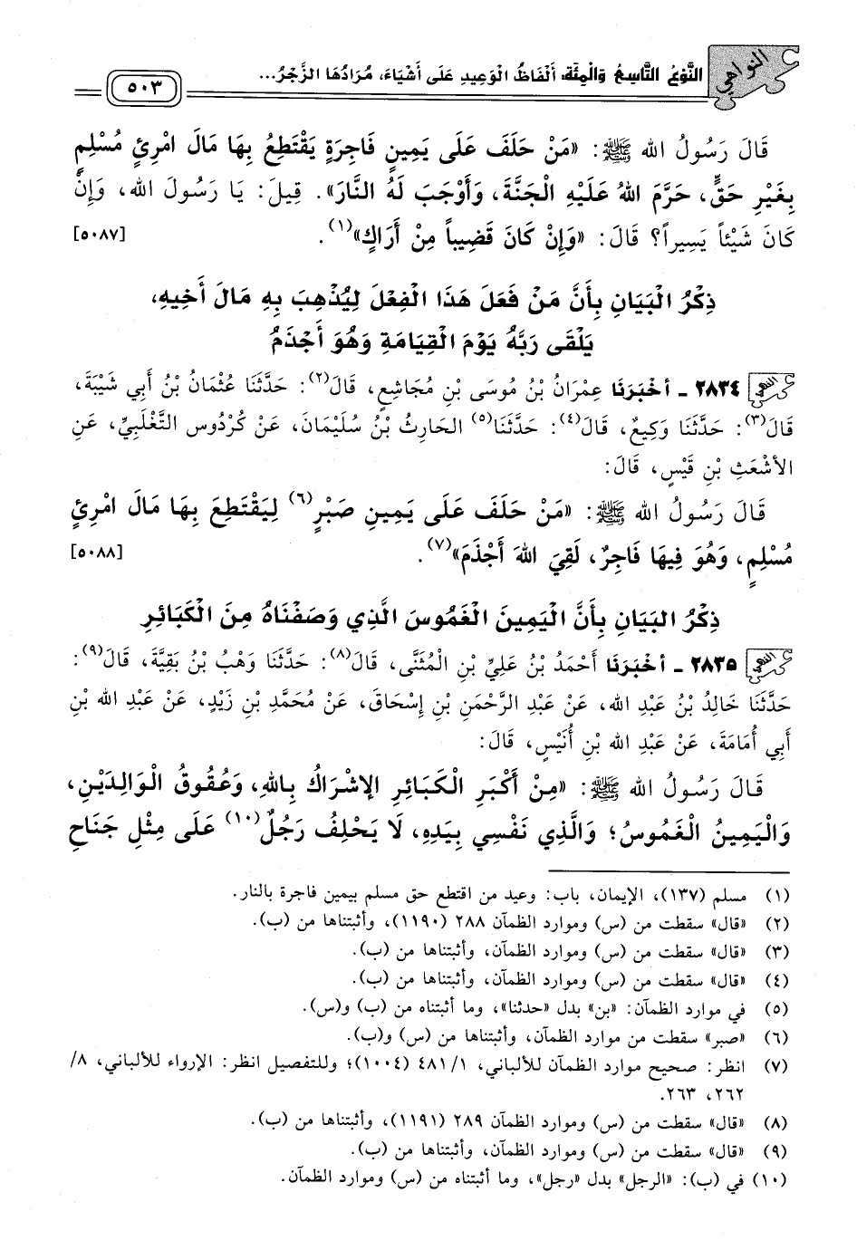ذِكْرُ الْبَيَانِ بِأَنَّ الْيَمِينَ الْغَمُوسَ الَّذِي وَصَفْنَاهُ مِنَ الْكَبَائِرِ.