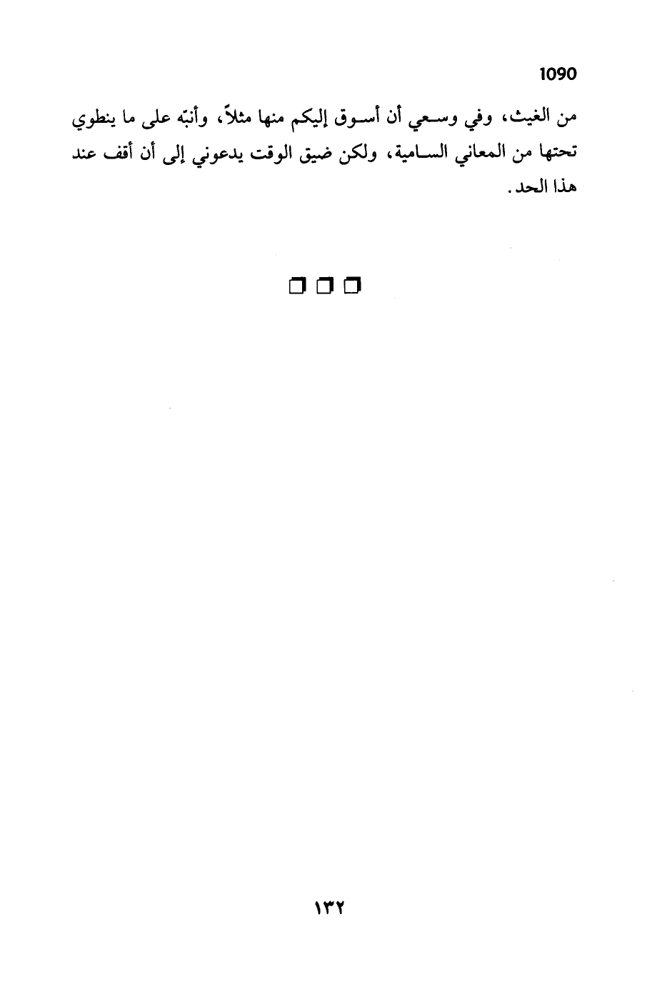 من الغيث، وفي وسعي أن أسوق إليكم منها مثلاً، وأنبّه على ما ينطوي تحتها من المعاني السامية، ولكن ضيق الوقت يدعوني إلى أن أقف عند هذا الحد.
