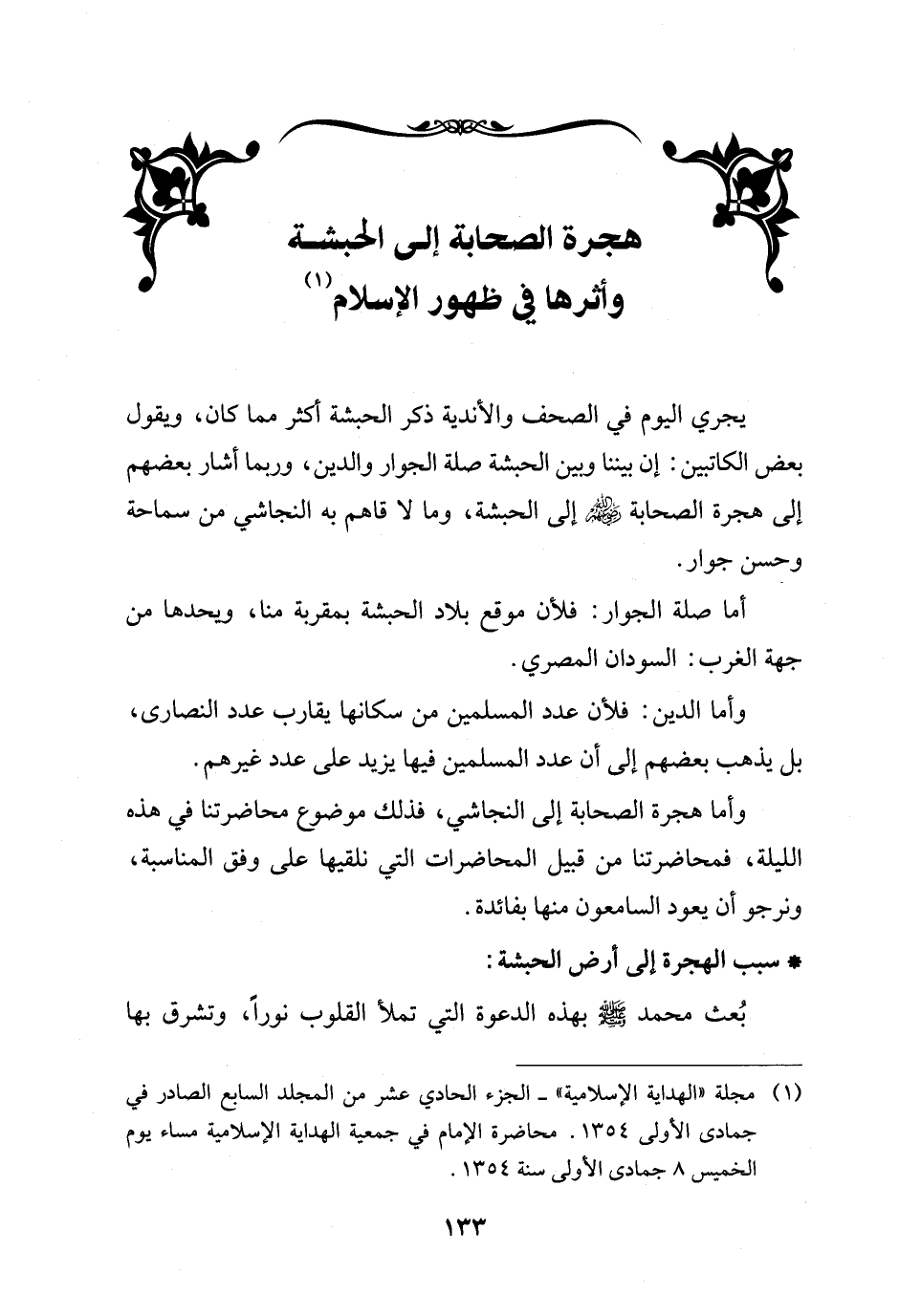 وأما هجرة الصحابة إلى النجاشي، فذلك موضوع محاضرتنا في هذه الليلة، فمحاضرتنا من قبيل المحاضرات التي نلقيها على وفق المناسبة، ونرجو أن يعود السامعون منها بفائدة.