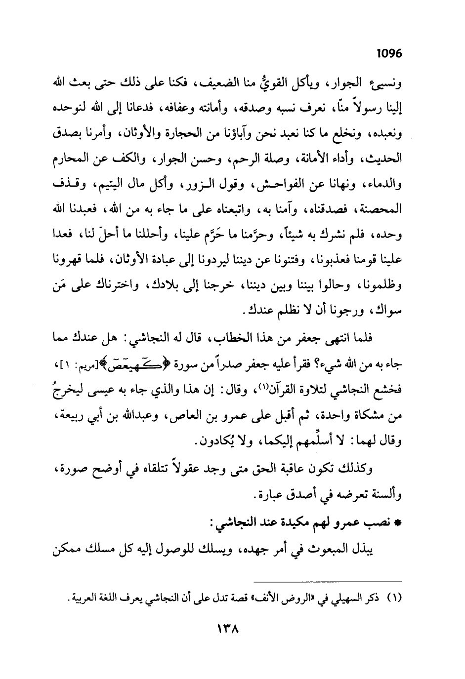 (¬1) ذكر السهيلي في "الروض الأنف" قصة تدل على أن النجاشي يعرف اللغة العربية.