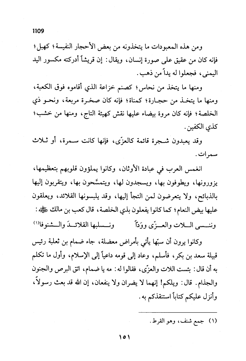 ومن هذه المعبودات ما يتخذونه من بعض الأحجار النفيسة؛ كهبل؛ فإنه كان من عقيق على صورة إنسان، ويقال: إن قريشاً أدركته مكسور اليد اليمنى، فجعلوا له يداً من ذهب.
