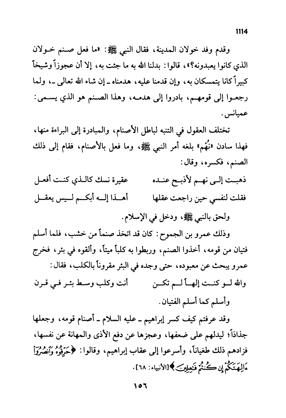 فقلت لنفسي حين راجعت عقلها ... أهذا إله أبكم ليس يعقل