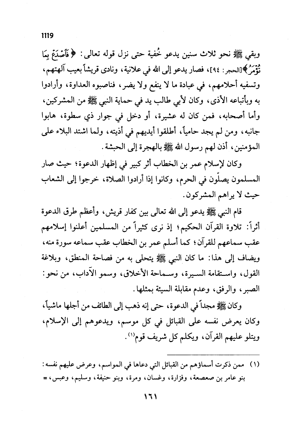 (¬1) ممن ذكرت أسماؤهم من القبائل التي دعاها في المواسم، وعرض عليهم نفسه: بنو عامر بن صعصعة، وفزارة، وغسان، ومرة، وبنو حنيفة، وسليم، وعبس, =