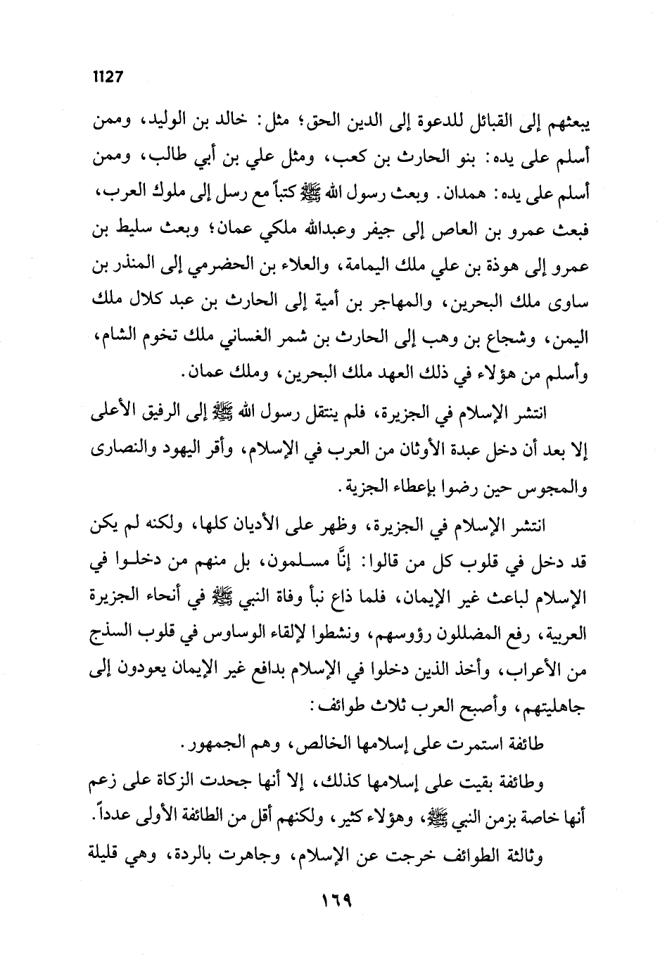 انتشر الإسلام في الجزيرة، وظهر على الأديان كلها، ولكنه لم يكن قد دخل في قلوب كل من قالوا: إنَّا مسلمون، بل منهم من دخلوا في الإسلام لباعث غير الإيمان، فلما ذاع نبأ وفاة النبي - صلى الله عليه وسلم - في أنحاء الجزيرة العربية، رفع المضللون رؤوسهم، ونشطوا لإلقاء الوساوس في قلوب السذج من الإعراب، وأخذ الذين دخلوا في الإسلام بدائع غير الإيمان يعودون إلى جاهليتهم، وأصبح العرب ثلاث طوائف: