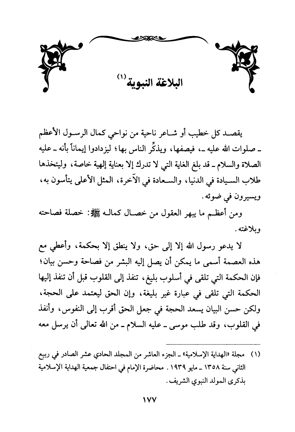 (¬1) مجلة "الهداية الإسلامية" - الجزء العاشر من المجلد الحادي عشر الصادر في ربيع الثاني سنة 1358 - مايو 1939. محاضرة الإمام في احتفال جمعية الهداية الإسلامية بذكرى المولد النبوي الشريف.