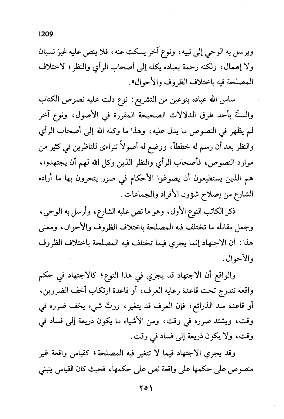 ويرسل به الوحي إلى نبيه، ونوع آخر يسكت عنه، فلا ينص عليه غيرَ نسيان ولا إهمال، ولكنه رحمة بعباده يكله إلى أصحاب الرأي والنظر؛ لاختلاف المصلحة فيه باختلاف الظروف والأحوال".
