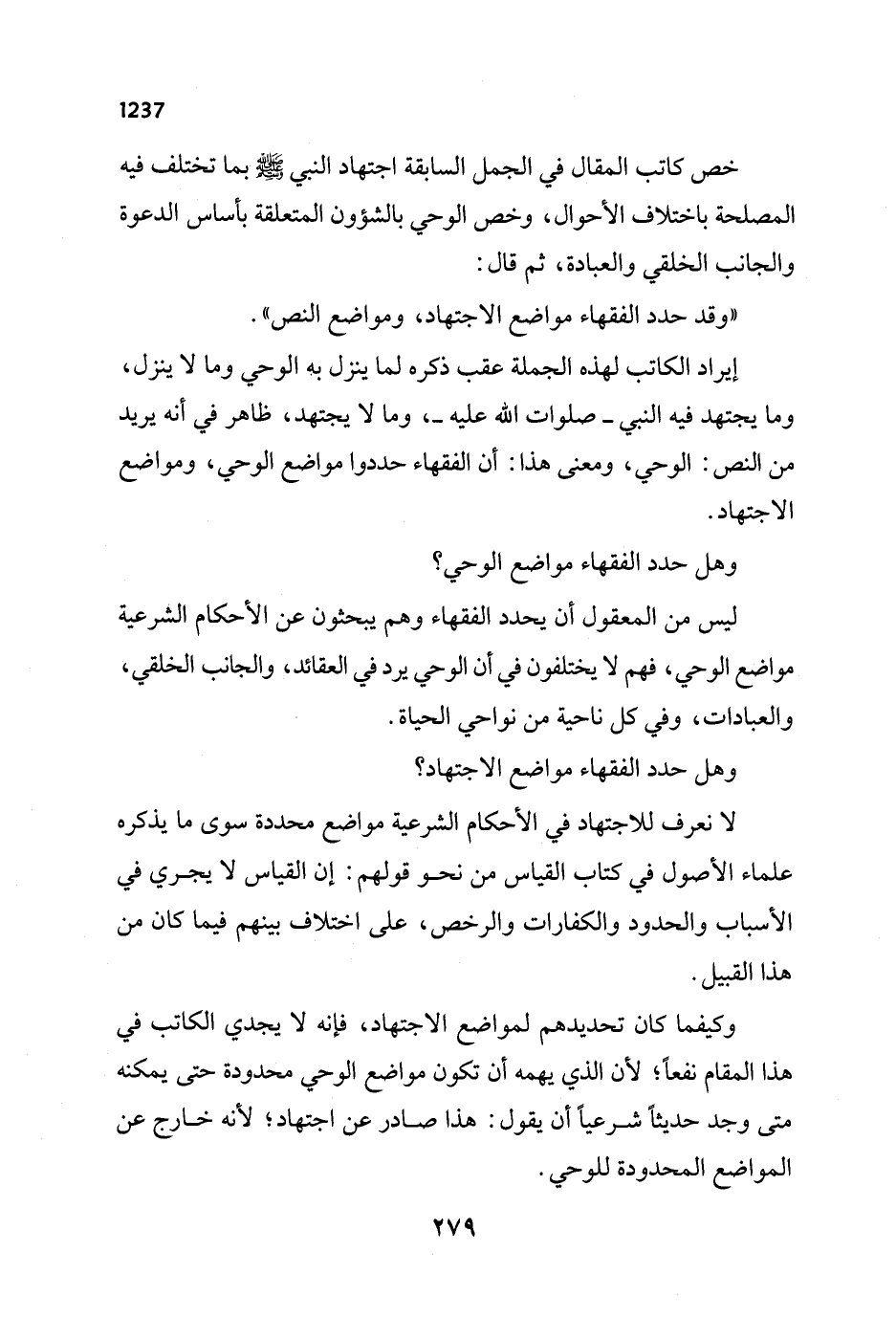 وكيفما كان تحديدهم لمواضع الاجتهاد، فإنه لا يجدي الكاتب في هذا المقام نفعاً؛ لأن الذي يهمه أن تكون مواضع الوحي محدودة حتى يمكنه متى وجد حديثاً شرعياً أن يقول: هذا صادر عن اجتهاد؛ لأنه خارج عن المواضع المحدودة للوحي.