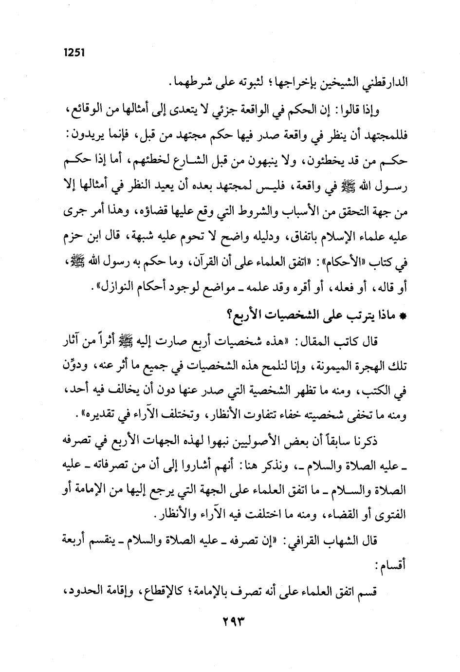 قال الشهاب القرافي: "إن تصرفه - عليه الصلاة والسلام - ينقسم أربعة أقسام: