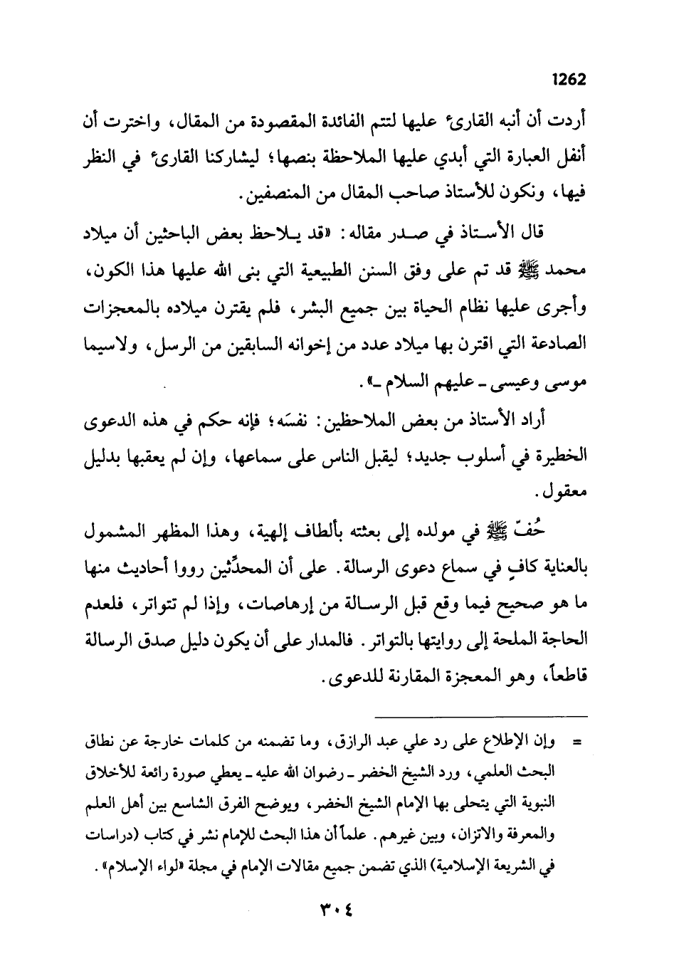 أردت أن أنبه القارئ عليها لتتم الفائدة المقصودة من المقال، واخترت أن أنقل العبارة التي أبدي عليها الملاحظة بنصها, ليشاركنا القارئ في النظر فيها، ونكون للأستاذ صاحب المقال من المنصفين.