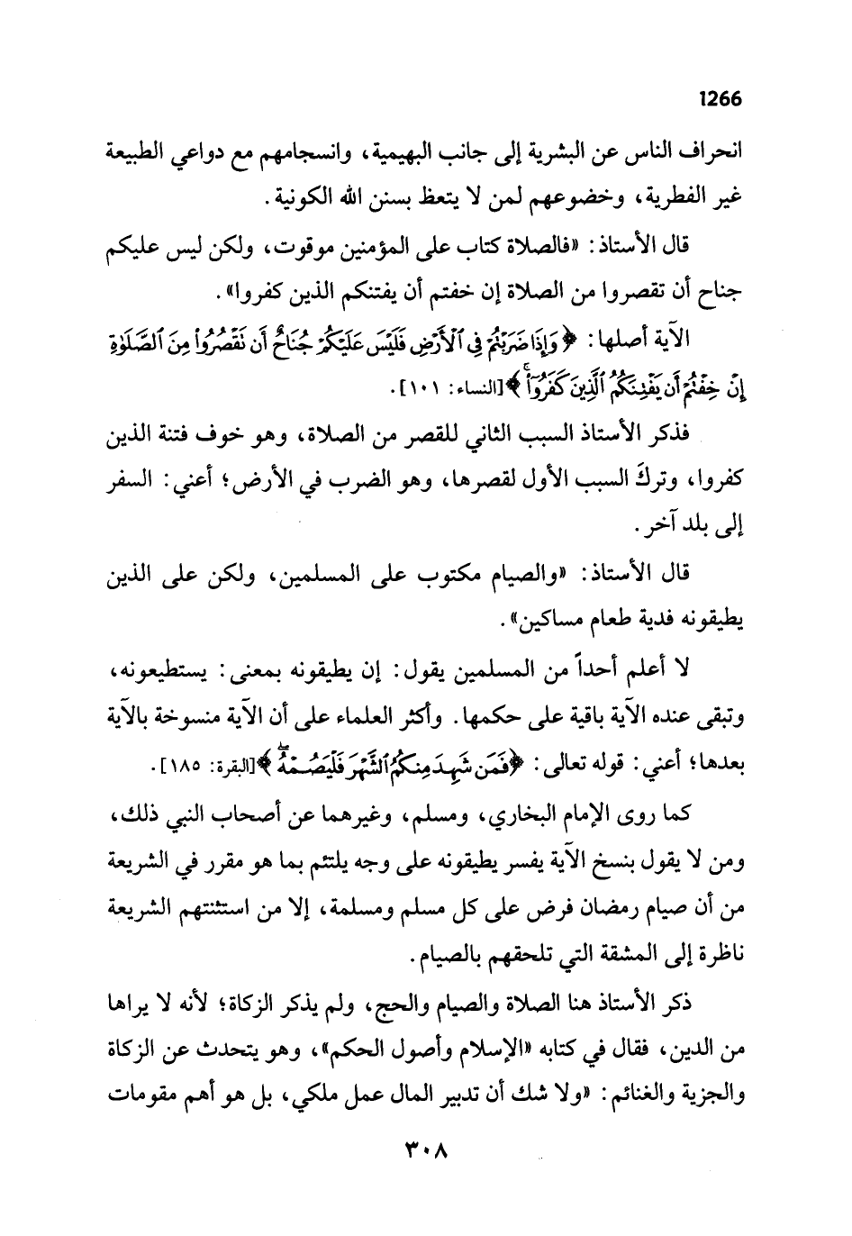 قال الأستاذ: "فالصلاة كتاب على المؤمنين موقوت، ولكن ليس عليكم جناح أن تقصروا من الصلاة إن خفتم أن يفتنكم الذين كفروا".