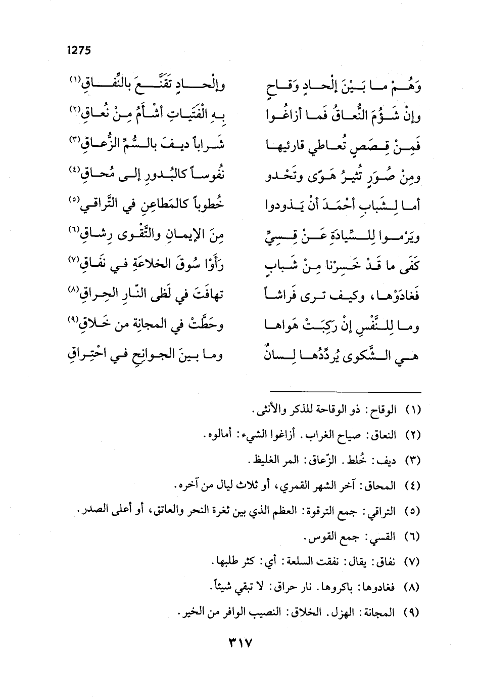 كَفَى ما قَدْ خَسِرْنا مِنْ شَبابِ ... رَأَوْا سُوقَ الخلاعَةِ في نَفاقِ (¬7)