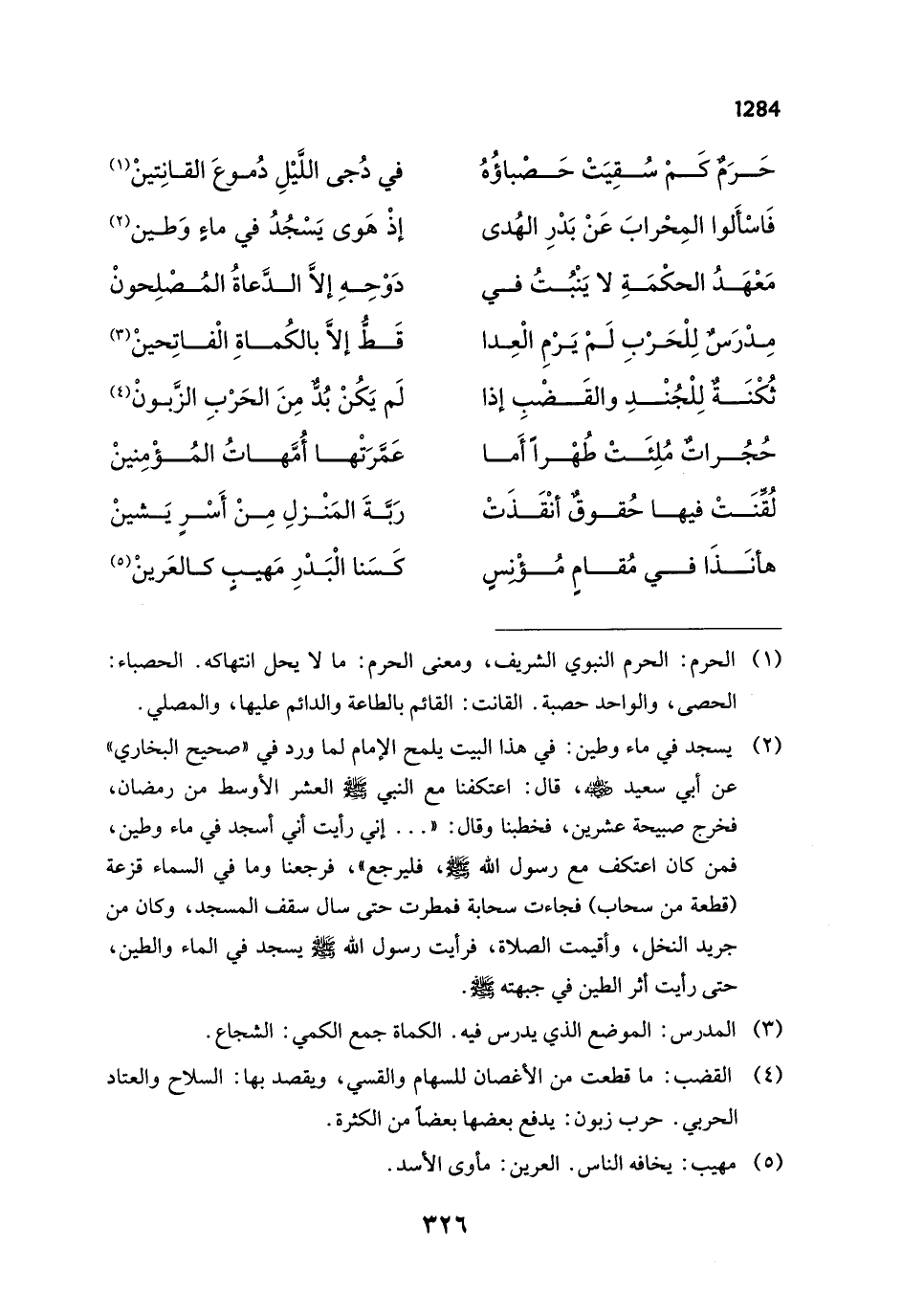 (¬1) الحرم: الحرم النبوي الشريف، ومعنى الحرم: ما لا يحل انتهاكه. الحصباء: الحصى، والواحد حصبة. القانت: القائم بالطاعة والدائم عليها، والمصلي.