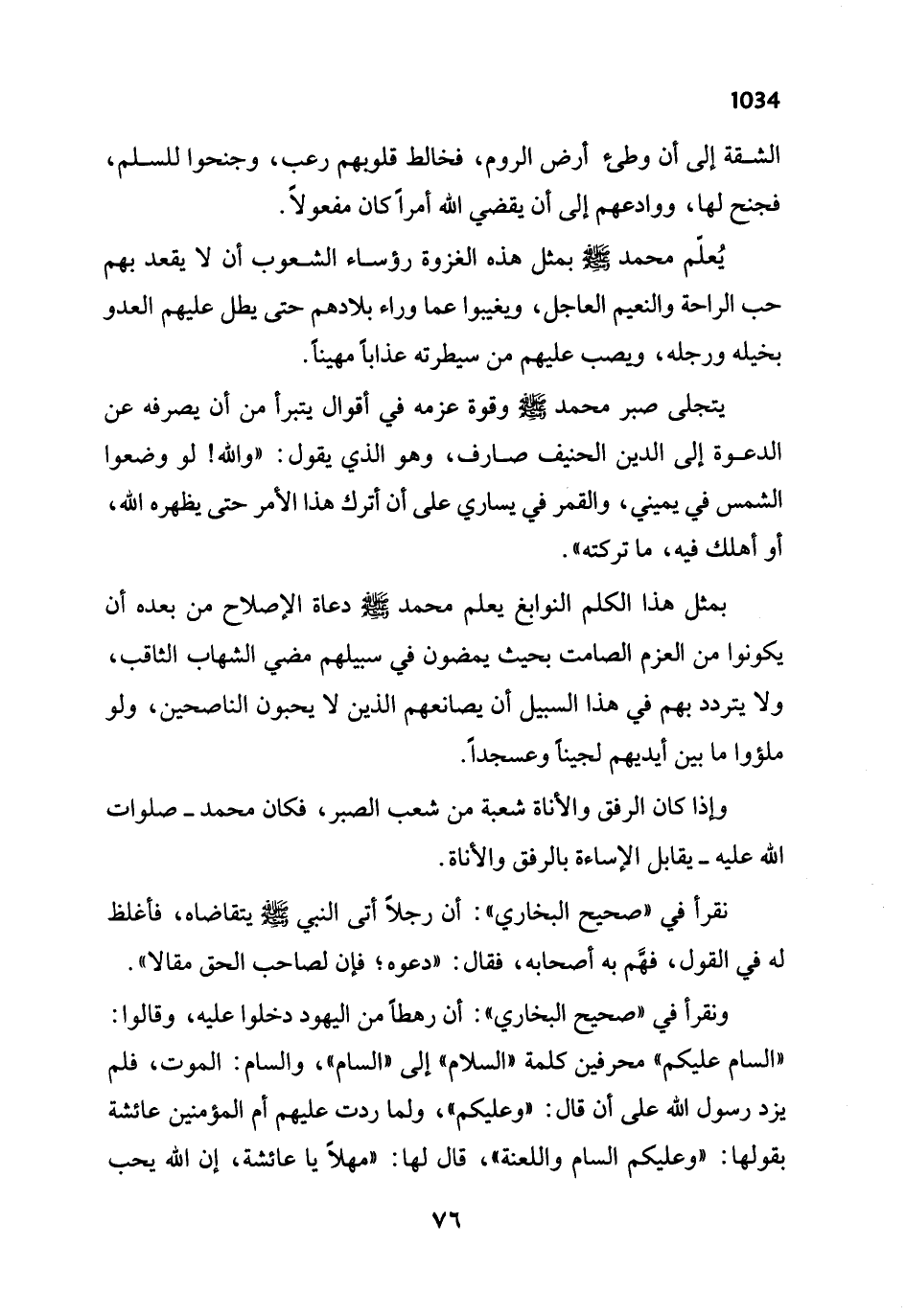 ونقرأ في "صحيح البخاري": أن رهطاً من اليهود دخلوا عليه، وقالوا: " السام عليكم" محرفين كلمة "السلام" إلى "السام"، والسام: الموت، فلم يزد رسول الله على أن قال: "وعليكم"، ولما ردت عليهم أم المؤمنين عائشة بقولها: "وعليكم السام واللعنة"، قال لها: "مهلاً يا عائشة، إن الله يحب