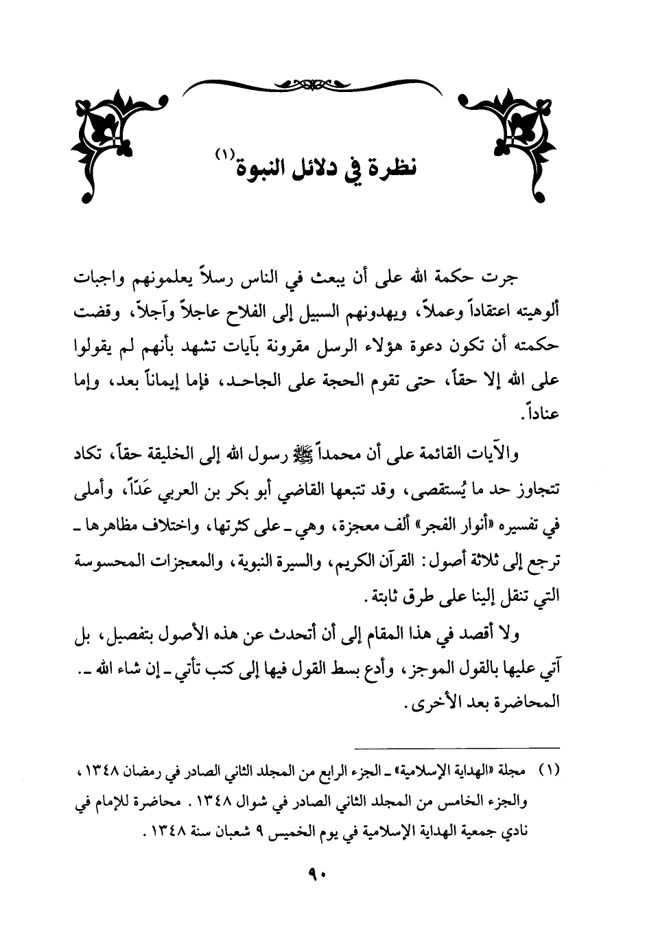 (¬1) مجلة "الهداية الإسلامية" - الجزء الرابع من المجلد الثاني الصادر في رمضان 1348، والجزء الخامس من المجلد الثاني الصادر في شوال 1348. محاضرة للإمام في نادي جمعية الهداية الإسلامية في يوم الخميس 9 شعبان سنة 1348.