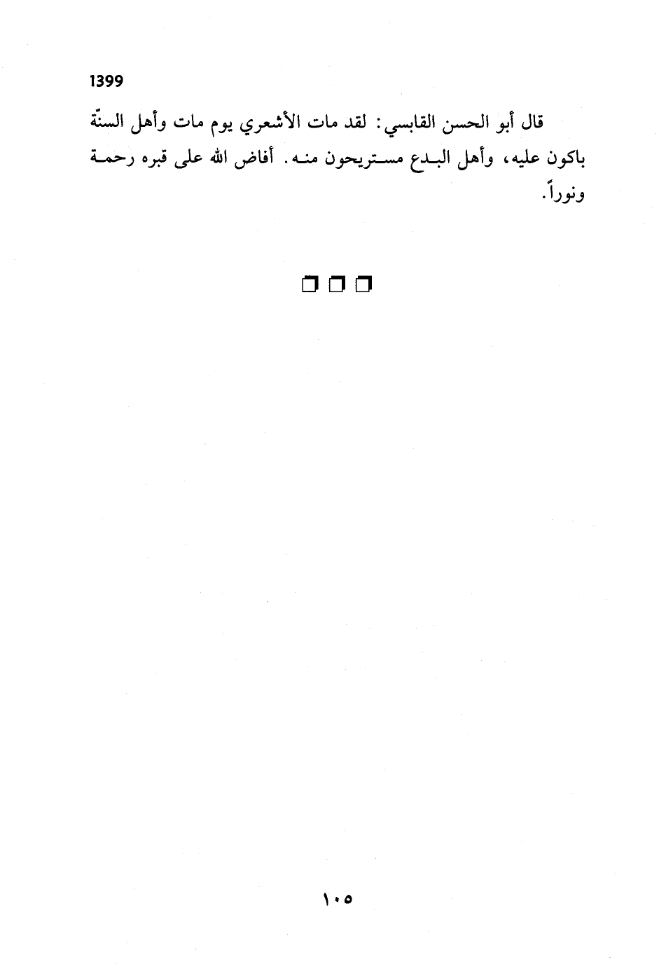 قال أبو الحسن القابسي: لقد مات الأشعري يوم مات وأهل السنّة باكون عليه، وأهل البدع مستريحون منه. أفاض الله على قبره رحمة ونوراً.