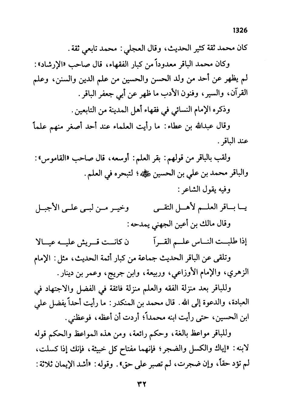 ولقب بالباقر من قولهم: بقر العلم: أوسعه، قال صاحب "القاموس": والباقر محمد بن علي بن الحسين - رضي الله عنه -؛ لتبحره في العلم.
