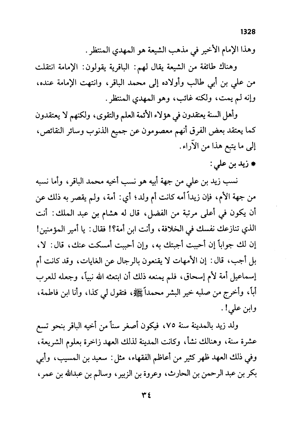 وأهل السنة يعتقدون في هؤلاء الأئمة العلم والتقوى، ولكنهم لا يعتقدون كما يعتقد بعض الفرق أنهم معصومون عن جميع الذنوب وسائر النقائص، إلى ما يتبع هذا من الآراء.