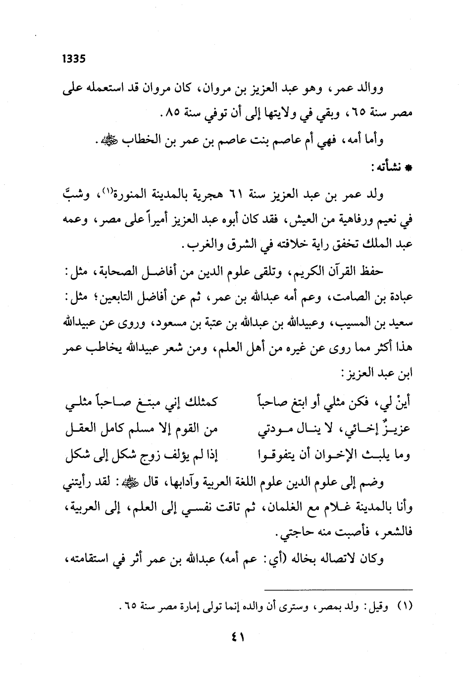 ولد عمر بن عبد العزيز سنة 61 هجرية بالمدينة المنورة (¬1)، وشبَّ في نعيم ورفاهية من العيش، فقد كان أبوه عبد العزيز أميراً على مصر، وعمه عبد الملك تخفق راية خلافته في الشرق والغرب.