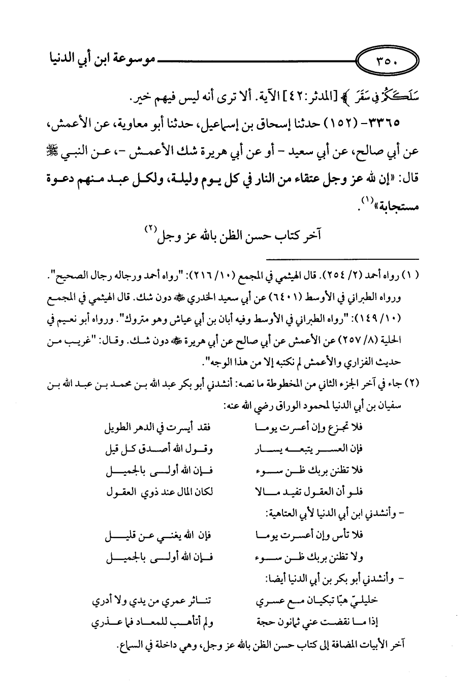 كتاب حسن الظن بالله عز وجل لابن أبي الدنيا - ط أطلس الخضراء = مقابل