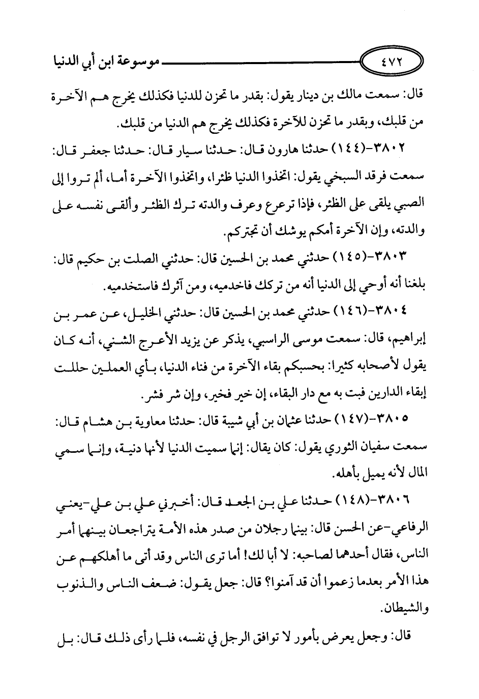 145 - حَدَّثَنِي مُحَمَّدُ بْنُ الْحُسَيْنِ، قَالَ: حَدَّثَنِي الصَّلْتُ بْنُ حَكِيمٍ، قَالَ: بَلَغَنَا أَنَّهُ أُوحِيَ إِلَى الدُّنْيَا أَنَّهُ مَنْ تَرَكَكِ فَاخْدُمِيهِ، وَمَنْ آثَرَكِ فَاسْتَخْدِمِيهِ.