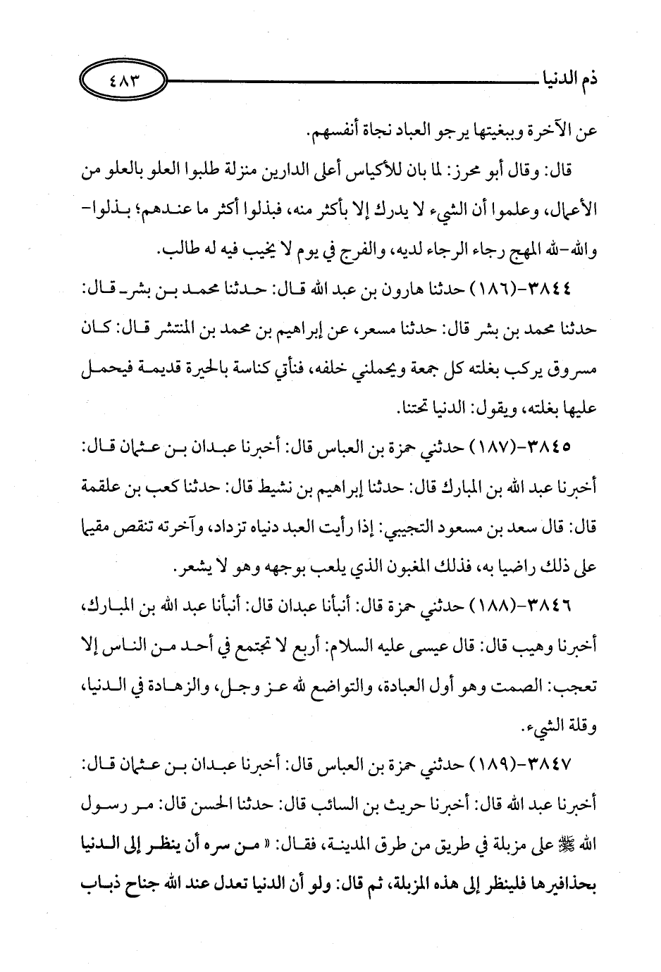 كتاب ذم الدنيا لابن أبي الدنيا - ط أطلس الخضراء = مقابل