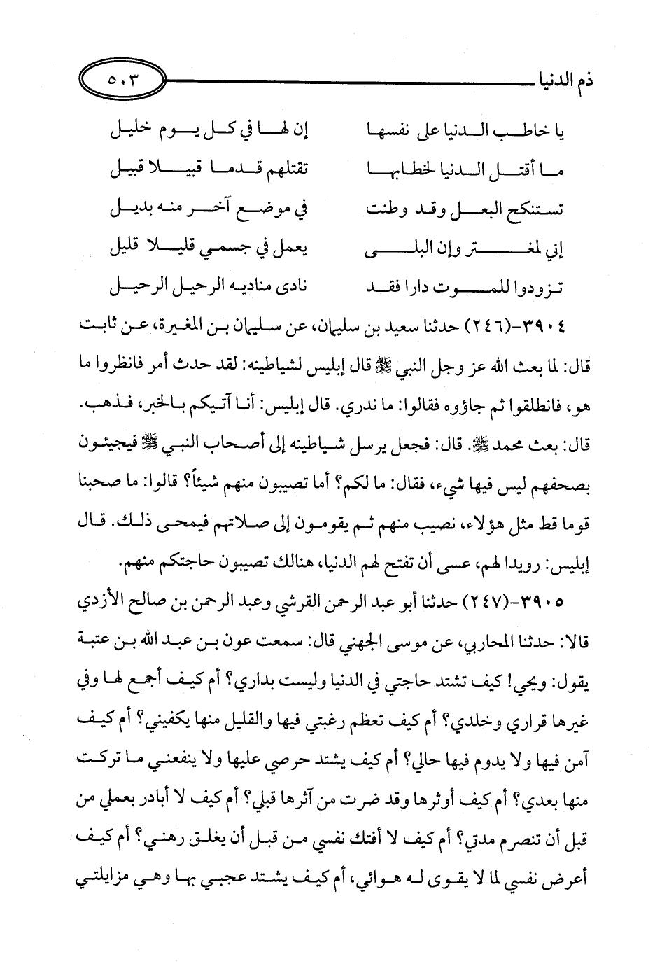 كتاب ذم الدنيا لابن أبي الدنيا - ط أطلس الخضراء = مقابل