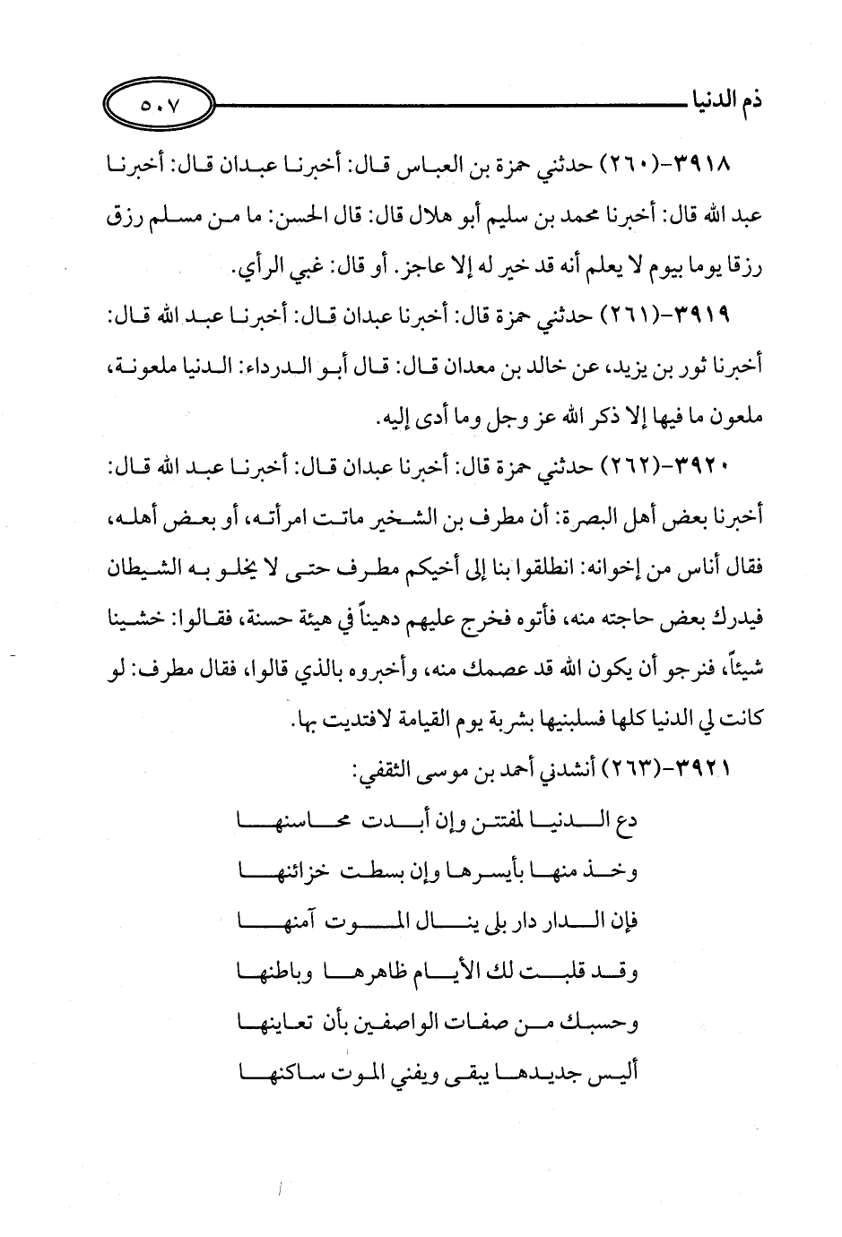 كتاب ذم الدنيا لابن أبي الدنيا - ط أطلس الخضراء = مقابل