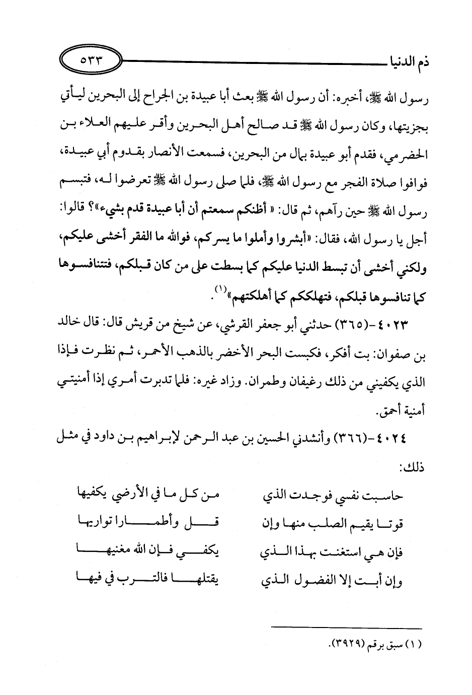 366 - وَأَنْشَدَنِي الْحُسَيْنُ بْنُ عَبْدِ الرَّحْمَنِ لِإِبْرَاهِيمَ بْنِ دَاوُدَ فِي مِثْلِ ذَلِكَ: