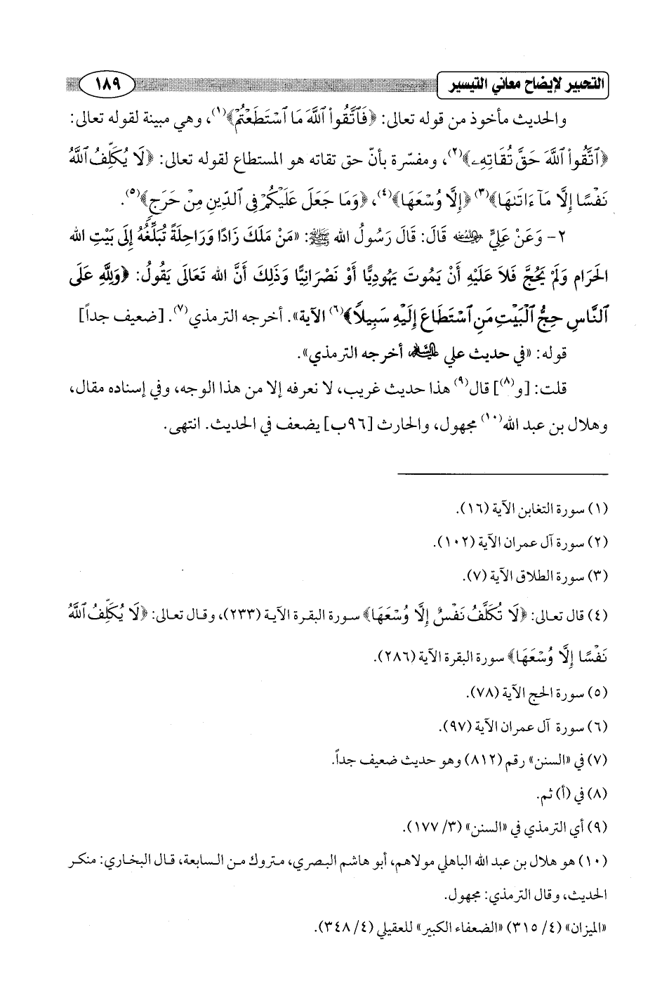 (¬4) قال تعالى: {لَا تُكَلَّفُ نَفْسٌ إِلَّا وُسْعَهَا} سورة البقرة الآية (233)، وقال تعالى: {لَا يُكَلِّفُ اللَّهُ نَفْسًا إِلَّا وُسْعَهَا} سورة البقرة الآية (286).