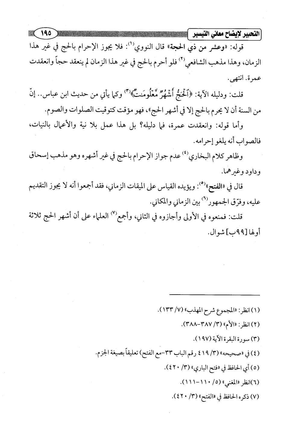 قلت: ودليله الآية: {الْحَجُّ أَشْهُرٌ مَعْلُومَاتٌ} (¬3) وكما يأتي من حديث ابن عباس .. إنّ من السنة أن لا يحرم بالحج إلا في أشهر الحج"، فهو مؤقت كتوقيت الصلوات والصوم.