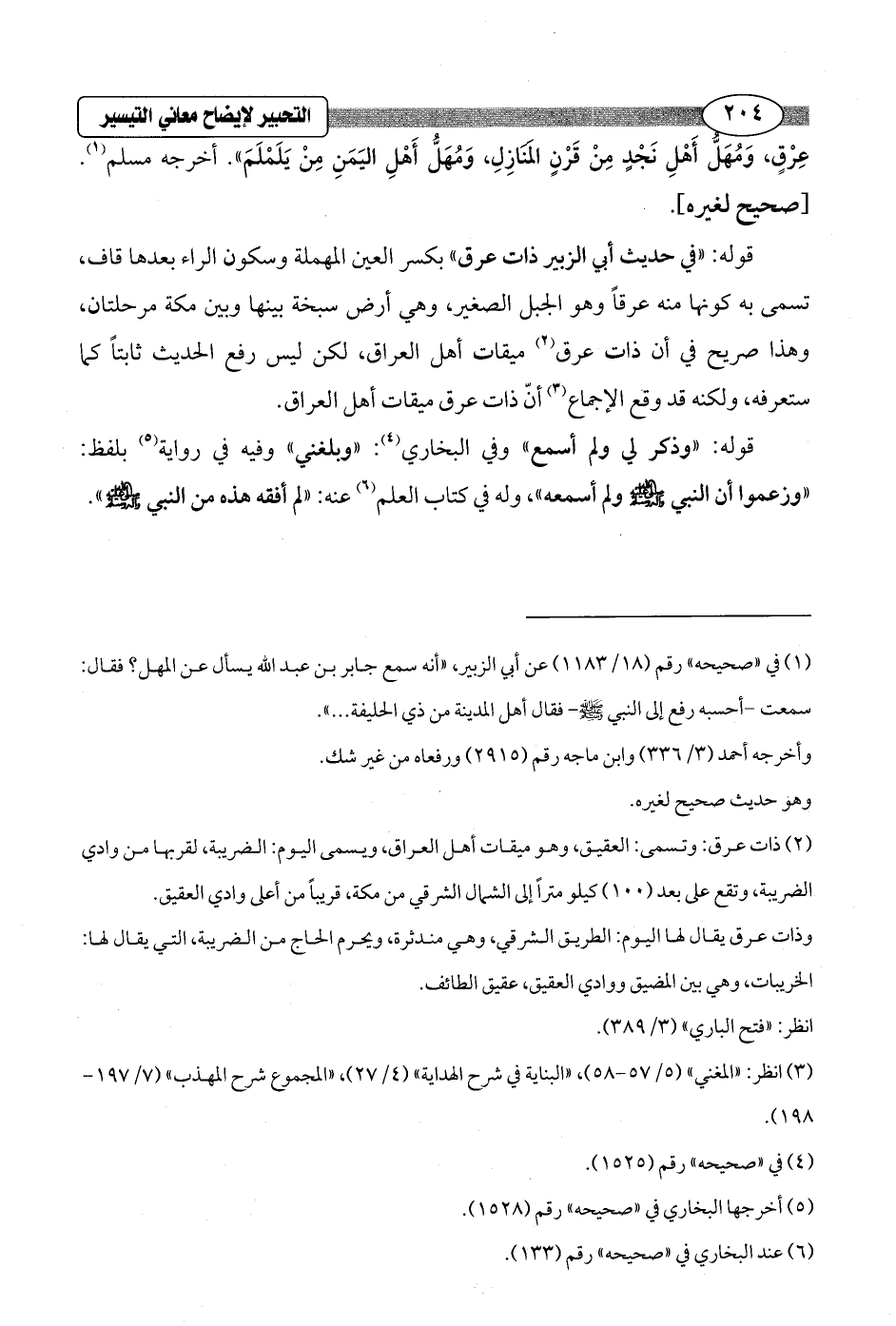 (¬1) في "صحيحه" رقم (18/ 1183) عن أبي الزبير، "أنه سمع جابر بن عبد الله يسأل عن المهل؟ فقال: سمعت - أحسبه رفع إلى النبي - صلى الله عليه وسلم - فقال أهل المدينة من ذي الحليفة ... ".
