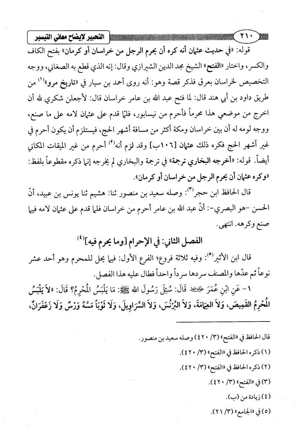 قال الحافظ ابن حجر (¬3): وصله سعيد بن منصور ثنا: هشيم ثنا يونس بن عبيد، أنّ الحسن - هو البصري -: أنّ عبد الله بن عامر أحرم من خراسان فلما قدم على عثمان لامه فيما صنع وكرهه. انتهى.