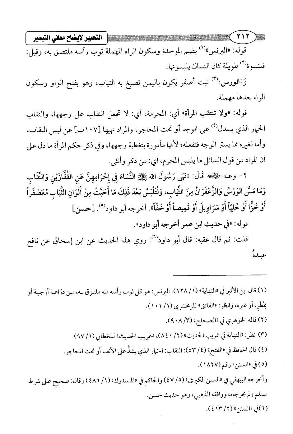(¬4) قال الحافظ في "الفتح" (4/ 53): النقاب: الخمار الذي يشدُّ على الأنف أو تحت المحاجر.