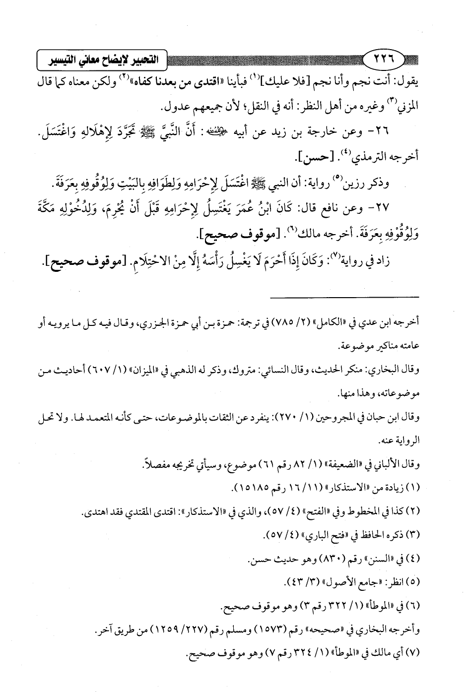 26 - وعن خارجة بن زيد عن أبيه - رضي الله عنه -: أَنَّ النَّبيَّ - صلى الله عليه وسلم - تجَرَّدَ لِإِهْلَالهِ وَاغْتَسَلَ. أخرجه الترمذي (¬4). [حسن].