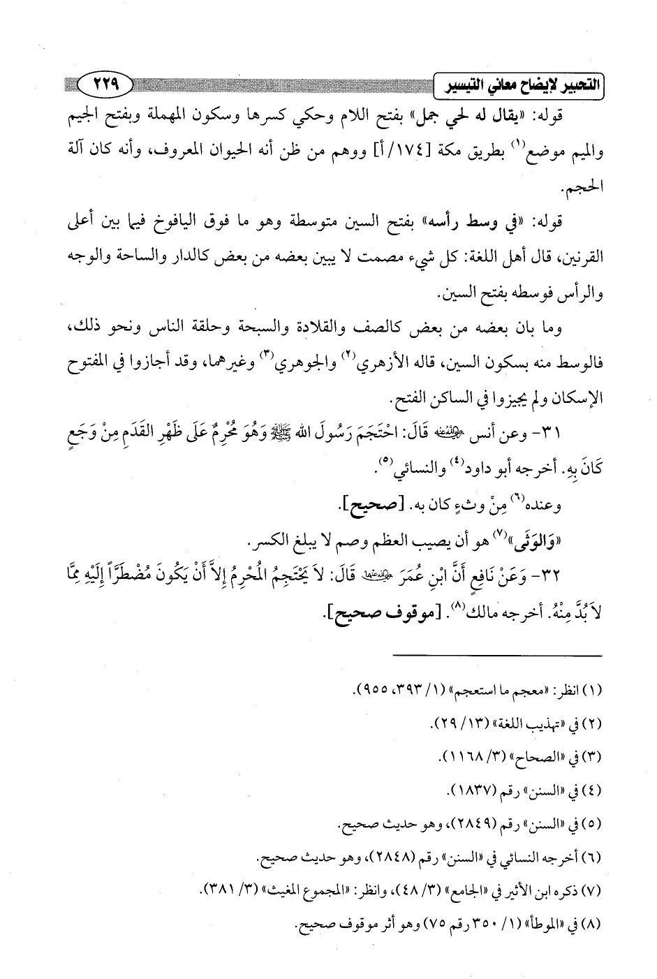 31 - وعن أنس - رضي الله عنه - قَالَ: احْتَجَمَ رَسُولَ الله - صلى الله عليه وسلم - وَهُوَ مُحْرِمٌ عَلَى ظَهْرِ القَدَمِ مِنْ وَجَعٍ كَانَ بِهِ. أخرجه أبو داود (¬4) والنسائي (¬5).