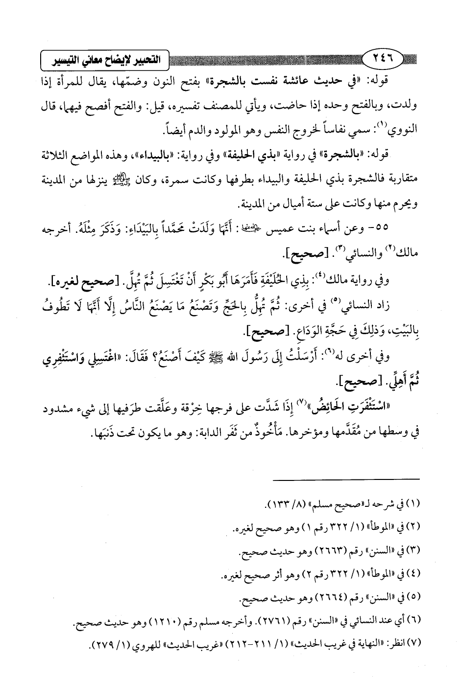 55 - وعن أسماء بنت عميس - رضي الله عنها -: أَنَّهَا وَلَدَتْ مَحمَّداً بِالبَيْدَاءِ: وَذَكَرَ مِثْلَهُ. أخرجه مالك (¬2) والنسائي (¬3). [صحيح].