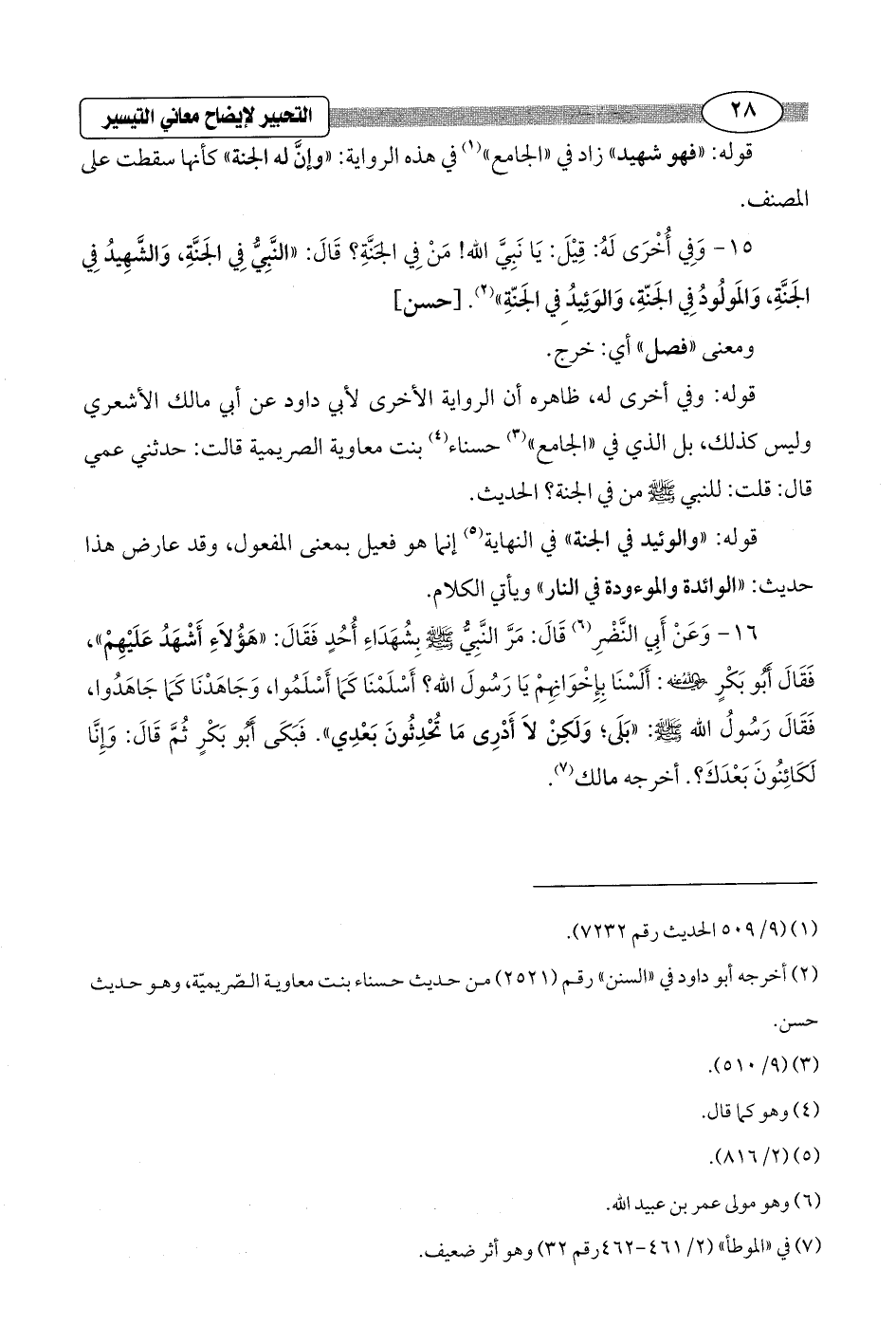 15 - وَفِي أُخْرَى لَهُ: قِيْلَ: يَا نَبِيَّ الله! مَنْ فِي الجَنَّةِ؟ قَالَ: "النَّبِيُّ فِي الجَنَّةِ, وَالشَّهِيدُ فِي الجَنَّةِ، وَالمَولُودُ فِي الجَنّةِ، وَالوئَيدُ في الجَنّةِ" (¬2). [حسن]