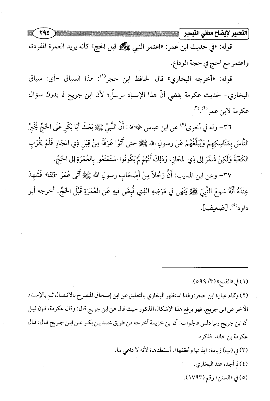 قوله: "أخرجه البخاري" قال الحافظ ابن حجر (¬1): هذا السياق - أي: سياق البخاري - لحديث عكرمة يقضي أنّ هذا الإسناد مرسلٌ؛ لأن ابن جريج لم يدرك سؤال عكرمة لابن عمر (¬2). (¬3)