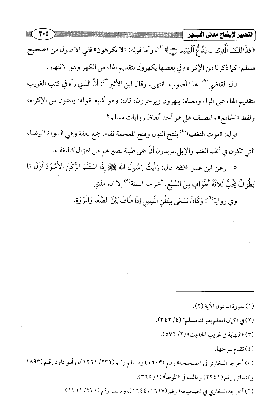 {فَذَلِكَ الَّذِي يَدُعُّ الْيَتِيمَ (2)} (¬1)، وأما قوله: "لا يكرهون" ففي الأصول من "صحيح مسلم" كما ذكرنا من الإكراه وفي بعضها يكهرون بتقديم الهاء من الكهر وهو الانتهار.